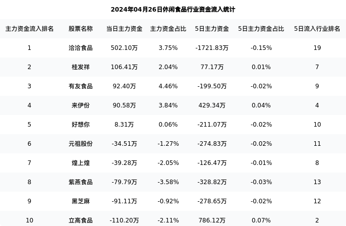 从主力资金流向来看,休闲食品行业今日主力资金流入2.58亿元,在所有申万二级行业中排名:52/131。