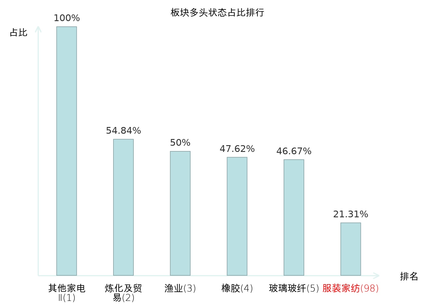 全市场所有行业板块中主力多头状态占比排名中,其他家电Ⅱ板块位居第一。铁路公路板块名次提升最快,较昨日上升37位。