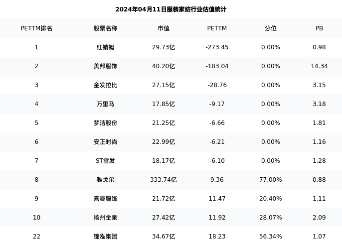 从估值角度看:锦泓集团最新市盈率PETTM为18.23,在行业内排名15/56,处于56.34分位。