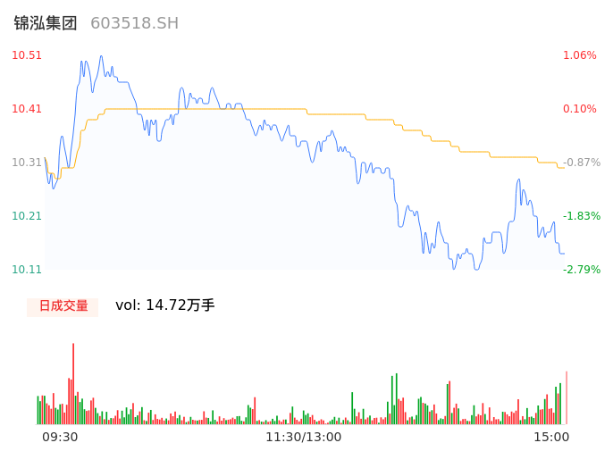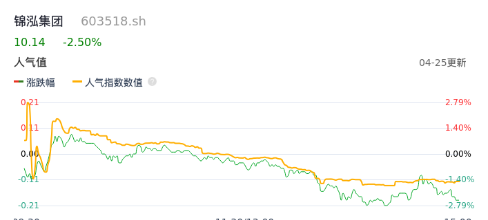 04月25日,锦泓集团收报10.14,股价涨幅-2.50%,成交金额1.52亿元,换手率4.29%。