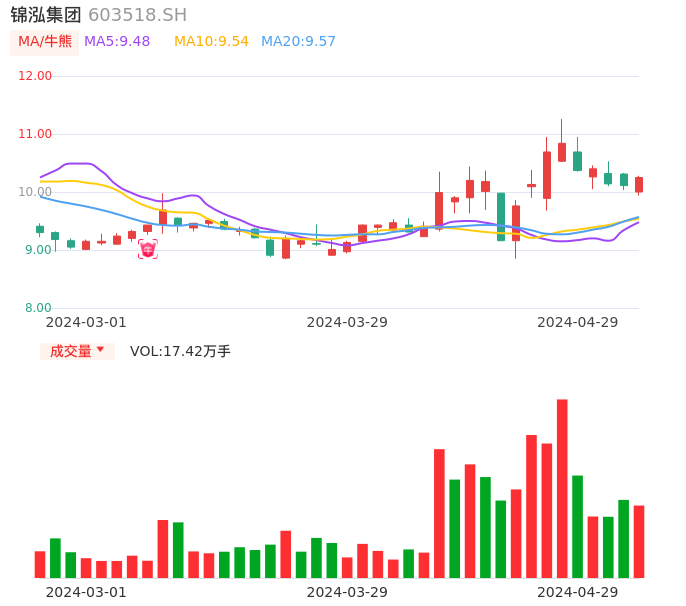 04月29日,锦泓集团收报10.25,股价涨幅1.38%,成交金额1.77亿元,换手率5.07%。
