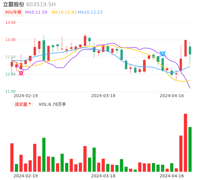 04月16日,立霸股份收报12.58,股价涨幅-3.16%,成交金额8578.28万元,换手率2.55%。