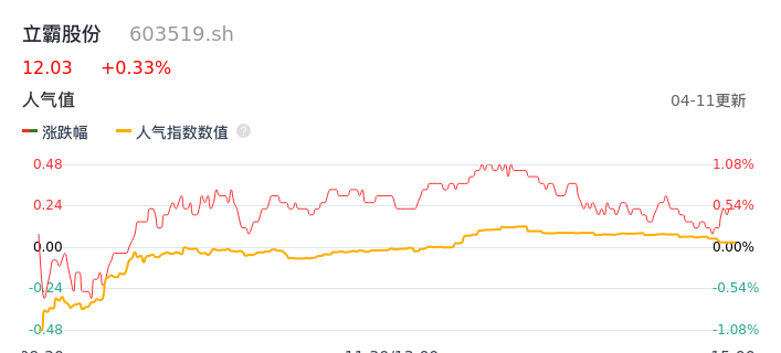 04月11日,立霸股份收报12.03,股价涨幅0.33%,成交金额1726.50万元,换手率0.54%。