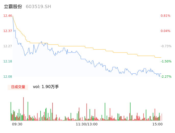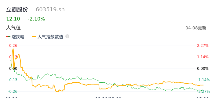 04月08日,立霸股份收报12.10,股价涨幅-2.10%,成交金额2318.73万元,换手率0.71%。