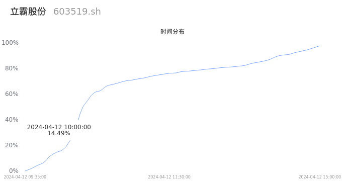 根据成交分布分析,该股票当天放量成交,成交清淡。时间上看,早盘前半小时成交量占据当天总成交量的14.49%;价格上看,成交呈现中间峰。成交分布分析主要研究股票成交的分布特性,不具有预测功能,请知悉。
