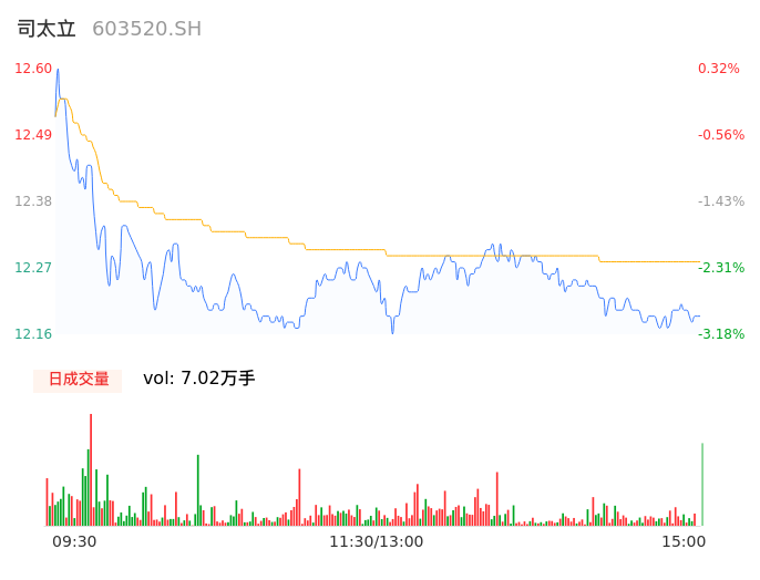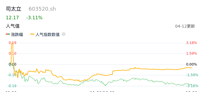 04月12日,司太立收报12.17,股价涨幅-3.11%,成交金额8611.64万元,换手率2.05%。
