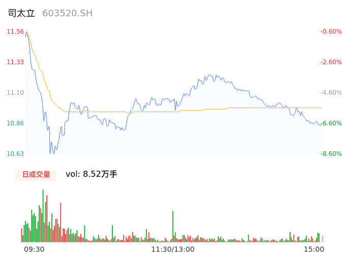 04月16日,司太立收报10.85,股价涨幅-6.71%,成交金额9352.24万元,换手率2.49%。