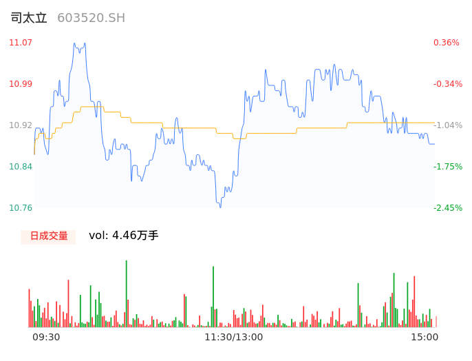 04月19日,司太立收报10.89,股价涨幅-1.27%,成交金额4872.36万元,换手率1.30%。