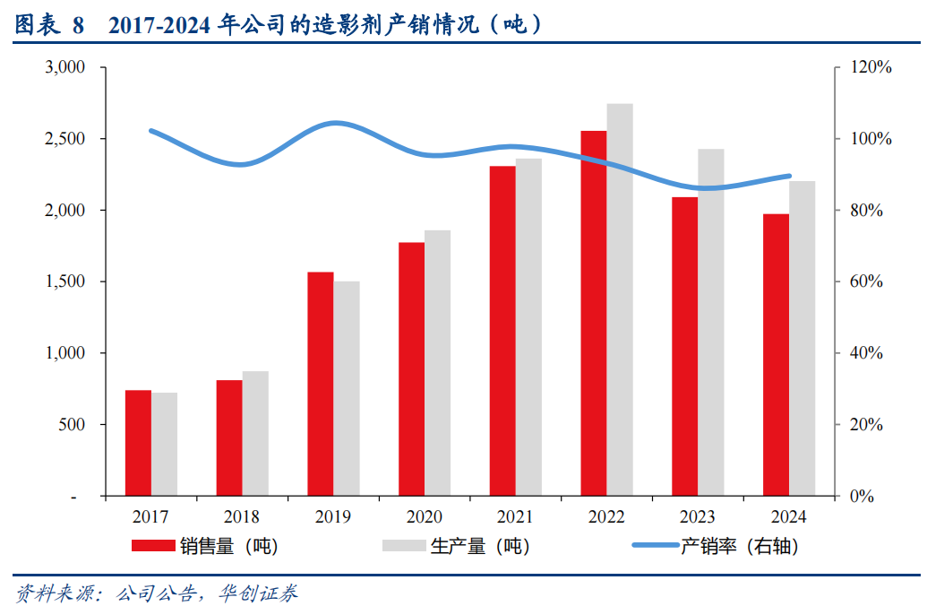 公司的造影剂原料药及中间体的产销量几乎常年处于满产满销状态,产销率常年维持在90%以上。因此,公司的发展过程中必然伴随着持续的产能投入。