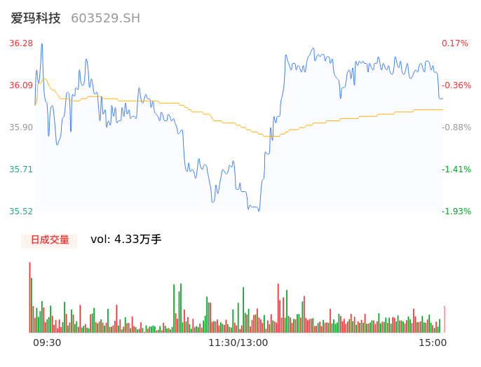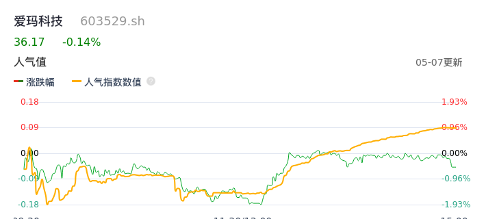 05月07日,爱玛科技收报36.17,股价涨幅-0.14%,成交金额1.56亿元,换手率1.94%。