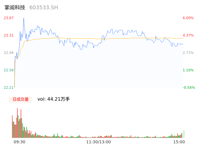 04月11日,掌阅科技收报23.10,股价涨幅3.45%,成交金额10.27亿元,换手率10.07%。