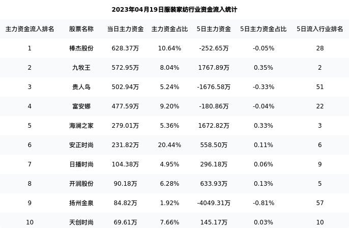 从主力资金流向来看,服装家纺行业今日主力资金流入5.30亿元,在所有申万二级行业中排名:105/131。