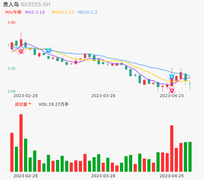 04月25日,贵人鸟收报3.10,股价涨幅-1.27%,成交金额5919.15万元,换手率1.23%。