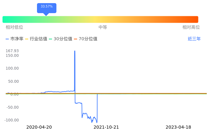 2023年04月18日,贵人鸟上涨0.65%收于3.09,今日成交金额3679.11万元。下文将从市盈率PETTM、市净率PB、市现率3个角度去分析公司估值情况。