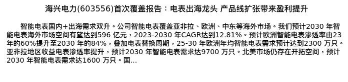 值得注意的是:2024年04月西部证券的杨敬梅分析师,首次发布关于海兴电力的研究报告,标题为:海兴电力(603556)首次覆盖报告:电表出海龙头 产品线扩张带来盈利提升。