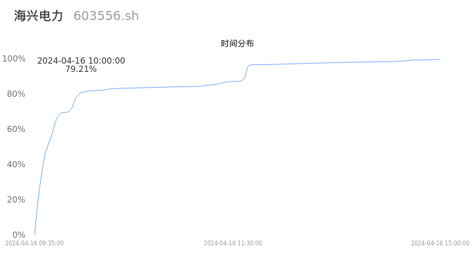 603556海兴电力2024年04月16日成交8.80万手,成交金额4.02亿元,相较昨日放量4.40万手,换手率1.80%,成交清淡。