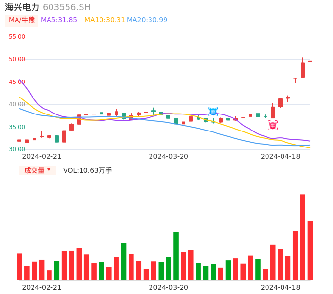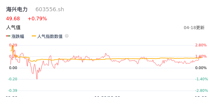 04月18日,海兴电力收报49.68,股价涨幅0.79%,成交金额5.28亿元,换手率2.18%。