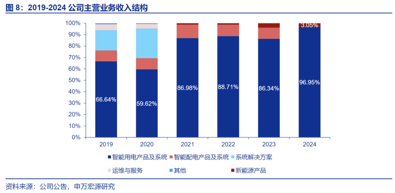 公司智能配用电产品及系统业务是长期稳健的基本盘,将带动公司新能源业务的长足发展。