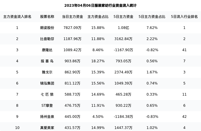 从主力资金流向来看,服装家纺行业今日主力资金流入8.78亿元,在所有申万二级行业中排名:16/131。