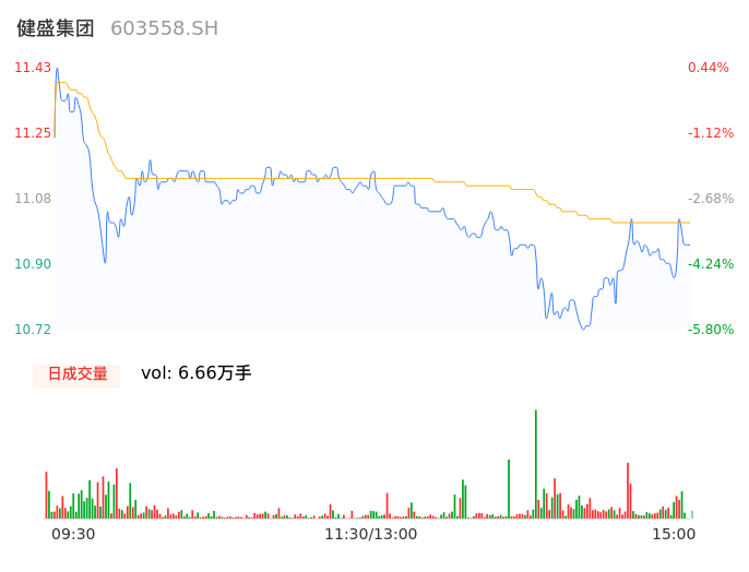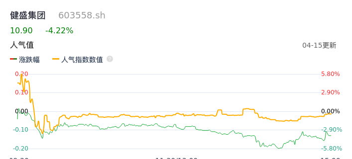 04月15日,健盛集团收报10.90,股价涨幅-4.22%,成交金额7324.32万元,换手率1.80%。