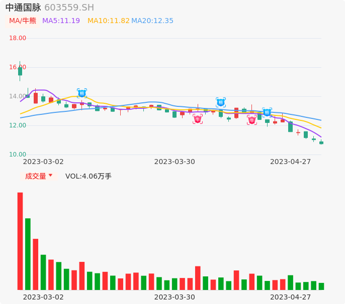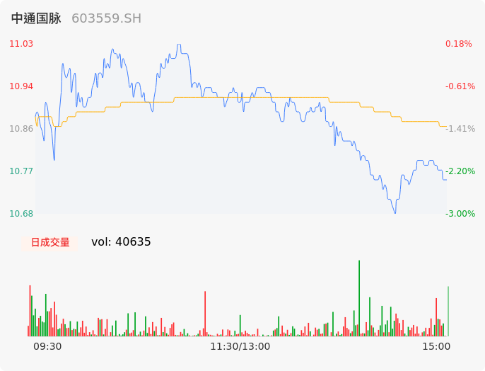 04月27日,中通国脉收报10.73,股价涨幅-2.54%,成交金额4412.86万元,换手率2.84%。
