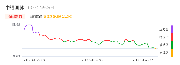 我们来看一下该股的九方特色指标强弱趋势的情况:中通国脉近日从观望区进入支撑区。股价出现一波快速下跌行情,目前下跌动能仍未衰竭。建议继续谨慎观望。注意今日下方支撑位:9.86元,如有效跌破将可能出现新一轮下跌