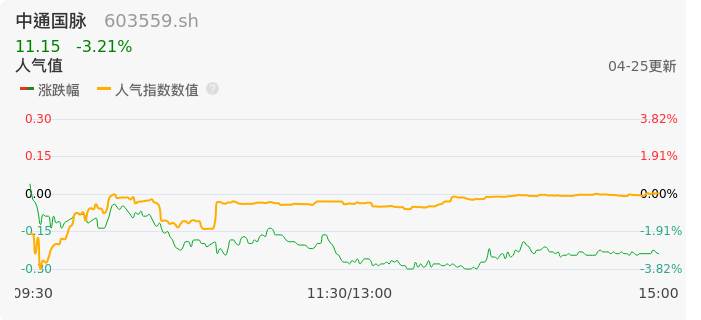 04月25日,中通国脉收报11.15,股价涨幅-3.21%,成交金额5122.48万元,换手率3.18%。