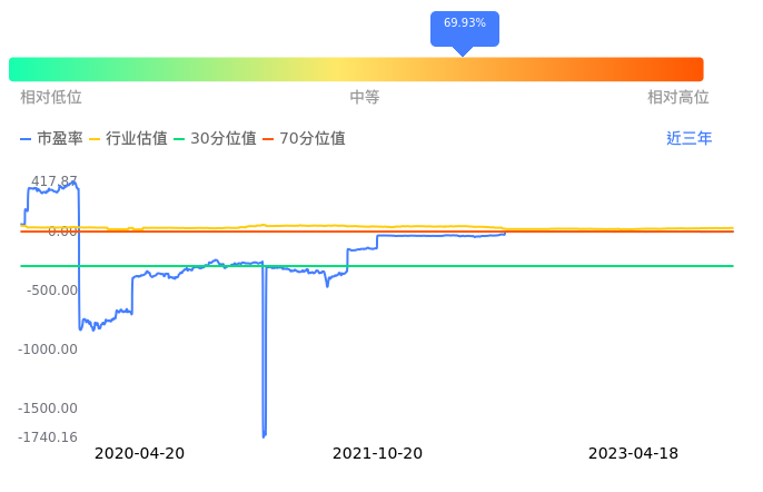 2023年04月18日,中通国脉下跌1.69%收于12.19,今日成交金额6279.12万元。下文将从市盈率PETTM、市净率PB、市现率3个角度去分析公司估值情况。