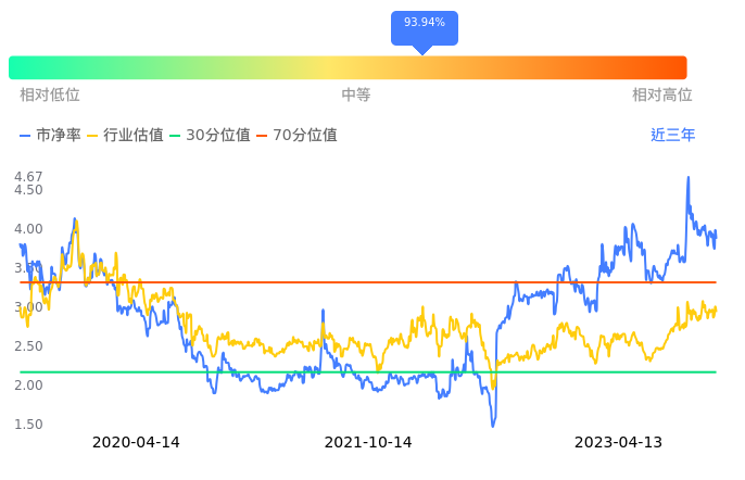 2023年04月13日,中通国脉下跌2.65%收于12.85,今日成交金额7861.53万元。下文将从市盈率PETTM、市净率PB、市现率3个角度去分析公司估值情况。