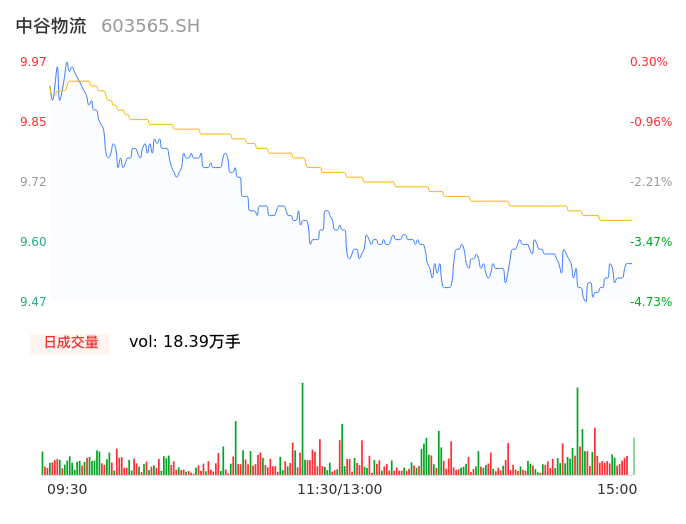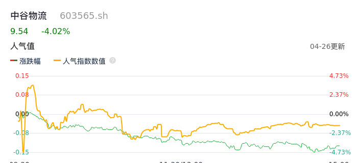 04月26日,中谷物流收报9.54,股价涨幅-4.02%,成交金额1.77亿元,换手率0.88%。