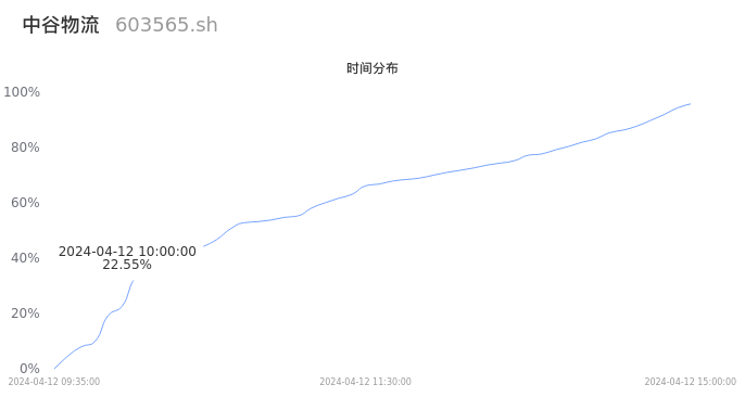 603565中谷物流2024年04月12日成交8.31万手,成交金额7560.90万元,相较昨日放量1.26万手,换手率0.40%,成交清淡。