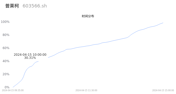 根据成交分布分析,该股票当天放量成交,成交清淡。时间上看,早盘前半小时成交量占据当天总成交量的30.31%;价格上看,成交呈现中间峰。成交分布分析主要研究股票成交的分布特性,不具有预测功能,请知悉。