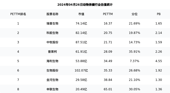 从估值角度看:普莱柯最新市盈率PETTM为28.09,在行业内排名4/10,处于35.91分位。