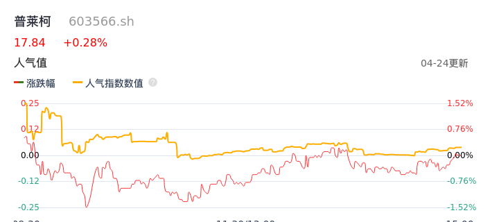 04月24日,普莱柯收报17.84,股价涨幅0.28%,成交金额3188.73万元,换手率0.52%。