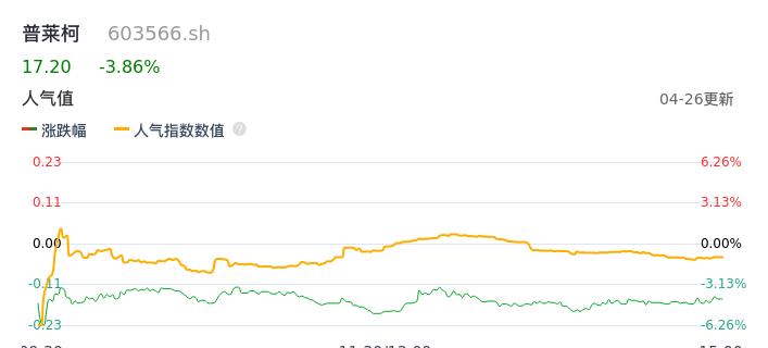 04月26日,普莱柯收报17.20,股价涨幅-3.86%,成交金额9107.91万元,换手率1.54%。
