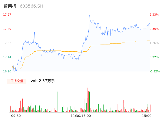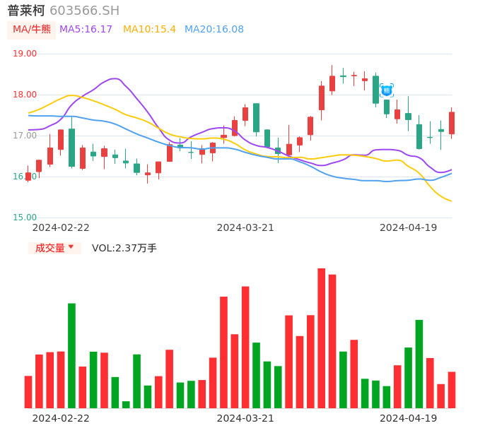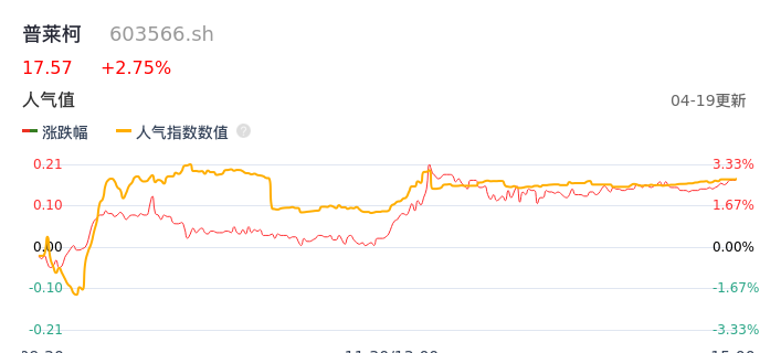 04月19日,普莱柯收报17.57,股价涨幅2.75%,成交金额4107.22万元,换手率0.68%。