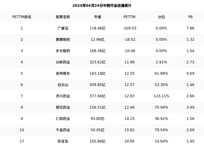 珍宝岛最新报告期数据为三季度,下表汇总了中药行业内市值靠前的公司三季度主要经营数据
