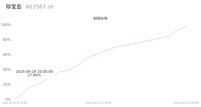 603567珍宝岛2024年04月29日成交10.38万手,成交金额1.22亿元,相较昨日放量3.14万手,换手率1.10%,成交清淡。