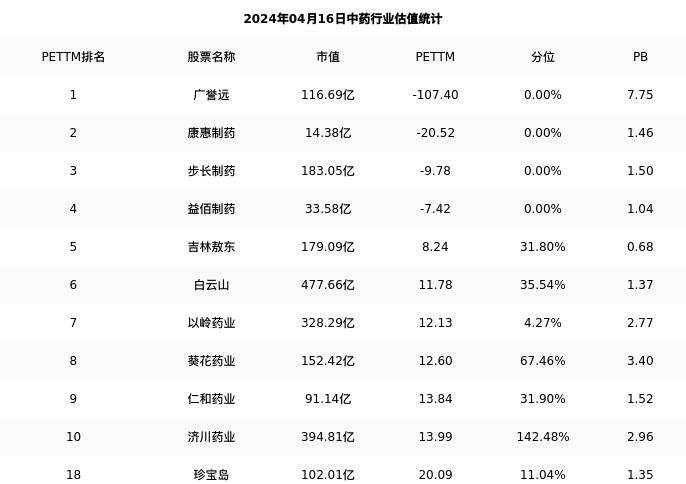 珍宝岛最新报告期数据为三季度,下表汇总了中药行业内市值靠前的公司三季度主要经营数据