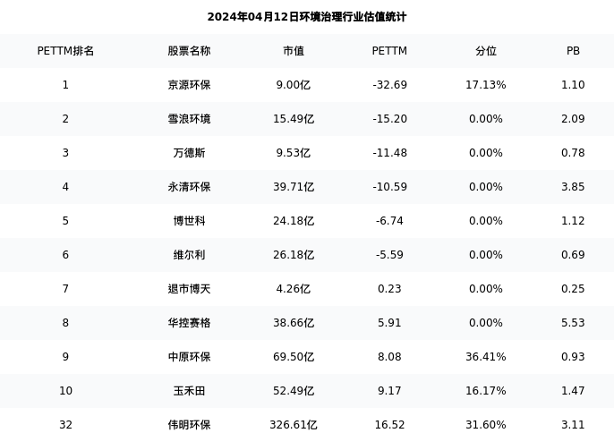 从估值角度看:伟明环保最新市盈率PETTM为16.52,在行业内排名26/105,处于31.60分位。