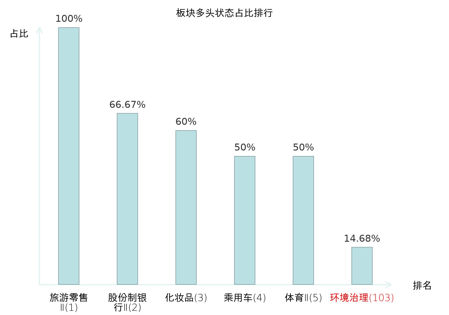 全市场所有行业板块中主力多头状态占比排名中,旅游零售Ⅱ板块位居第一。旅游零售Ⅱ板块名次提升最快,较昨日上升130位。