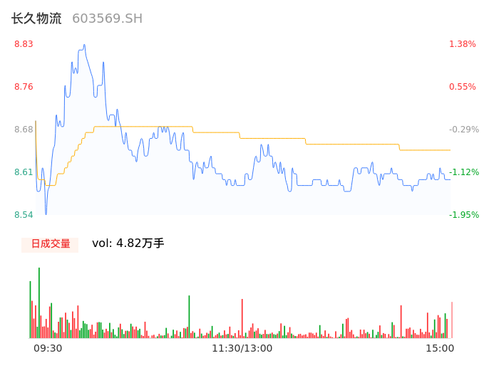 04月19日,长久物流收报8.61,股价涨幅-1.15%,成交金额4169.56万元,换手率0.80%。