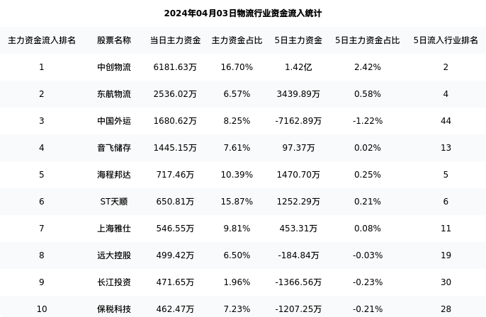 从主力资金流向来看,物流行业今日主力资金流入14.45亿元,在所有申万二级行业中排名:2/131。