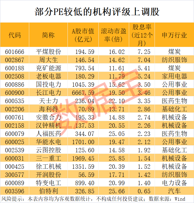从估值水平来看,截至9月30日收盘,18股滚动市盈率(PE)低于30倍,其中6股滚动市盈率不到15倍,分别是兖矿能源、老板电器、海利得、云图控股、周大生、安徽合力。