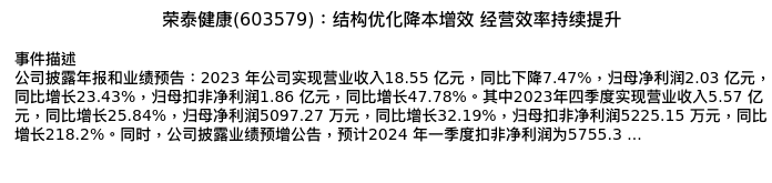 值得注意的是:2024年04月长江证券的陈亮/陈佳分析师,首次发布关于荣泰健康的研究报告,标题为:荣泰健康(603579):结构优化降本增效 经营效率持续提升。