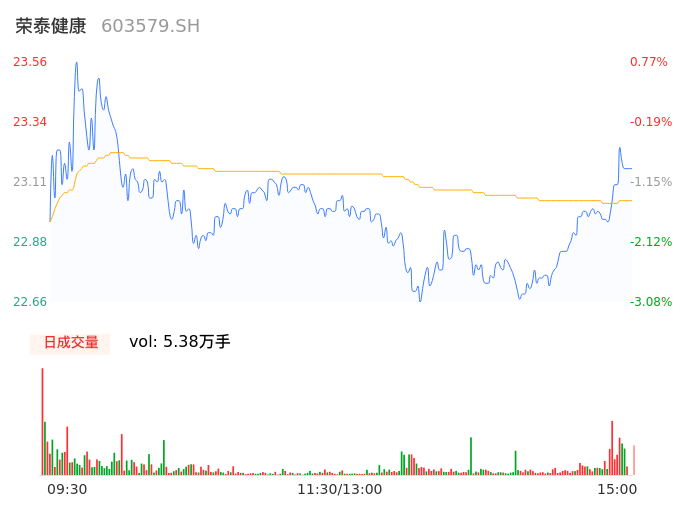 04月23日,荣泰健康收报23.16,股价涨幅-0.94%,成交金额1.24亿元,换手率3.87%。