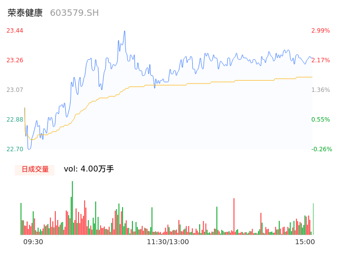 04月30日,荣泰健康收报23.26,股价涨幅2.20%,成交金额9265.63万元,换手率2.88%。