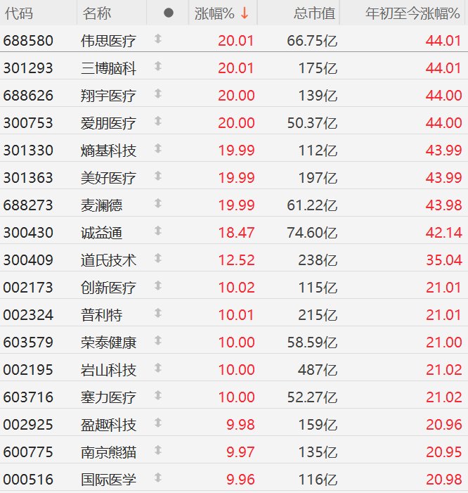 延续昨日强势,A股市场脑机接口股今日再掀涨停潮。其中,伟思医疗、三博脑科、翔宇医疗、爱朋医疗、熵基科技、美好医疗、麦澜德20CM涨停,诚益通涨超18%,道氏技术涨超12%,创新医疗、普利特、荣泰健康、岩山科技、塞力医疗、盈趣科技、南京熊猫、国际医学10CM涨停。