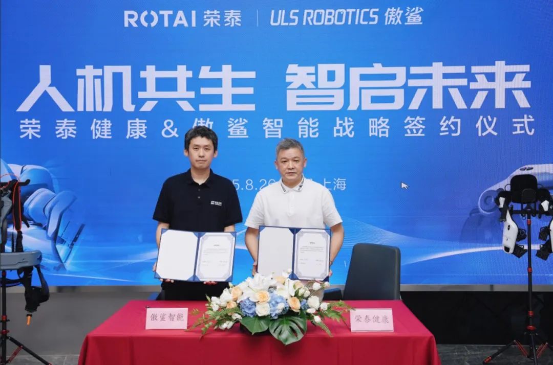上证报中国证券网讯8月26日,荣泰健康与上海傲鲨智能科技有限公司(简称“傲鲨智能”)在荣泰大厦举行战略合作签约仪式,标志着双方正式开启健康科技与外骨骼技术深度融合的新篇章,携手探索“人机共生”的无限可能。活动以“人机共生,智启未来”为主题,双方企业高管、技术团队及政府相关领导出席。