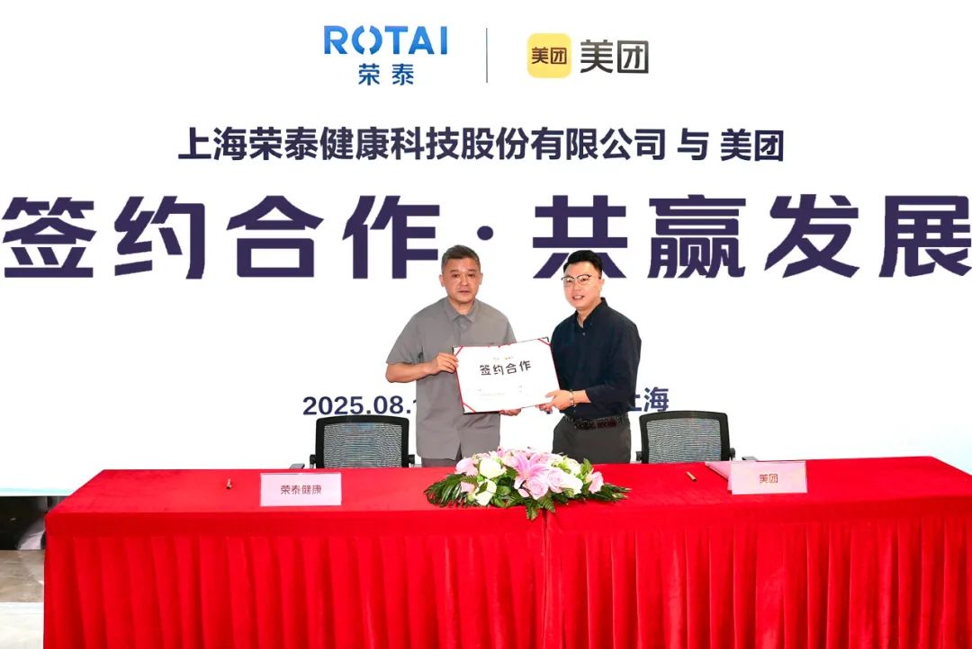 上证报中国证券网讯记者获悉,8月13日,荣泰健康与美团就理疗机器人项目正式达成战略合作,签约仪式在美团上海综合指挥中心举行。此次合作标志着双方将充分发挥各自在健康科技与本地生活服务领域的优势,共同探索“智能理疗+平台流量”的创新模式,为消费者带来更便捷、更智能的健康体验。